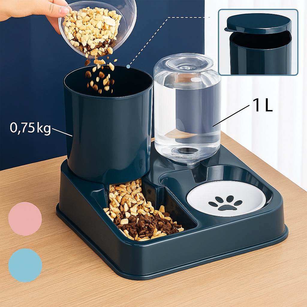 Trött på att ständigt behöva fylla på mat och vattenskålen flera gånger om dagen Gör då vardagen enklare för både dig och din katt med vår smarta Pet station en praktisk 2-i-1-lösning som ser till att ditt husdjur alltid har tillgång till fräsch mat och vatten. Den lutande designen skapar en bekvämare ät ställning, medan tyngdkraftsflödet automatiskt fyller på både foder och vatten utan elektricitet. Det här setet är perfekt för upptagna husdjursägare som vill säkerställa att de alltid har tillgång till det som behövs även när du inte är hemma.